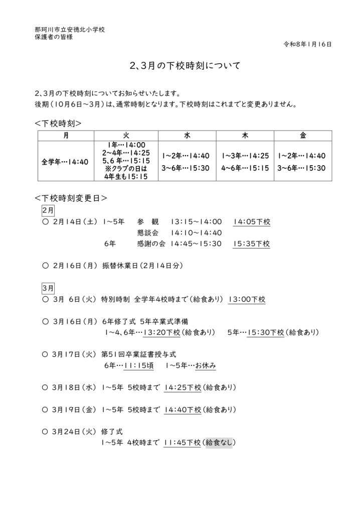 • 2・3月の下校時刻